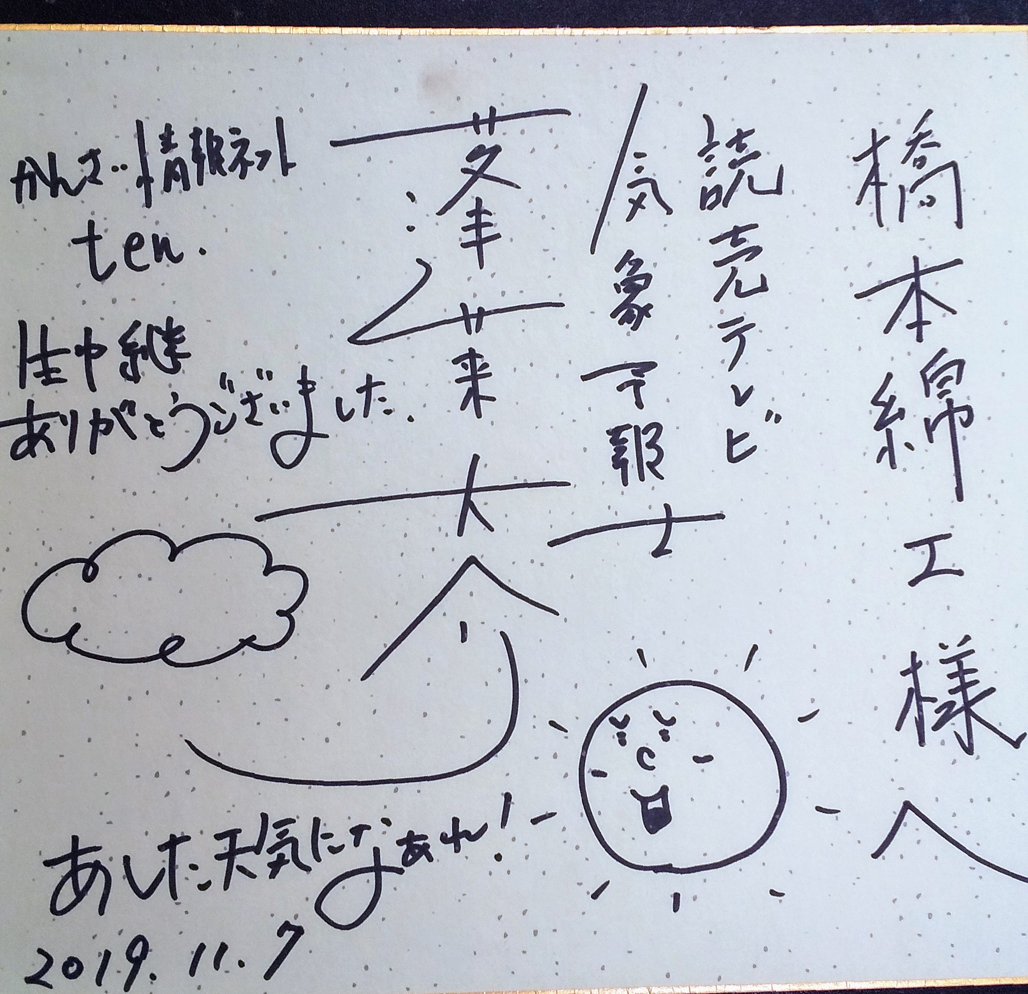 2019年の11月7日、読売テレビ放送夕方の情報番組『かんさい情報ネット ten.』のお天気コーナーにおいて、弊社工場に生中継が入りました。